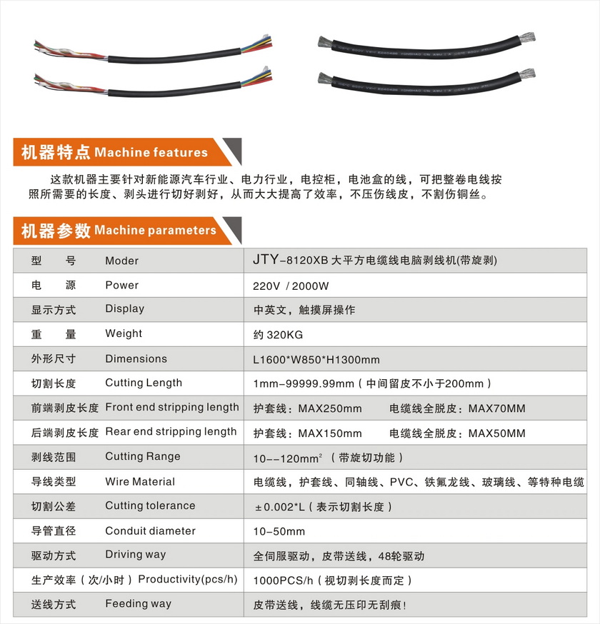 JTY-8120XB大平方电缆线电脑剥线机(带旋剥)